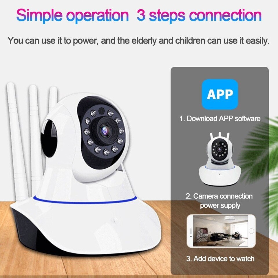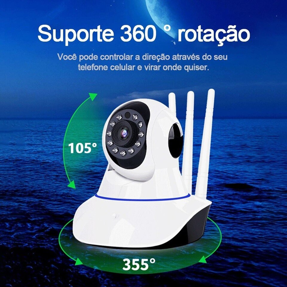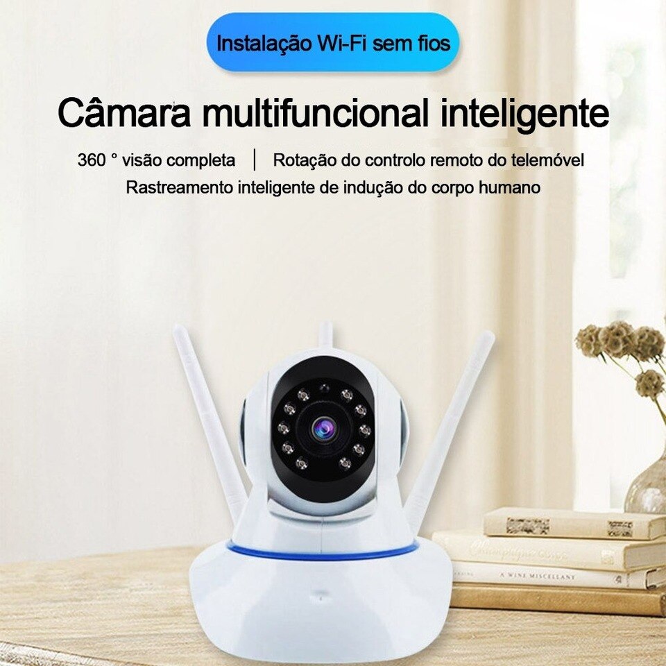 Câmera IP três antenas, Wi-Fi, áudio bidirecional.